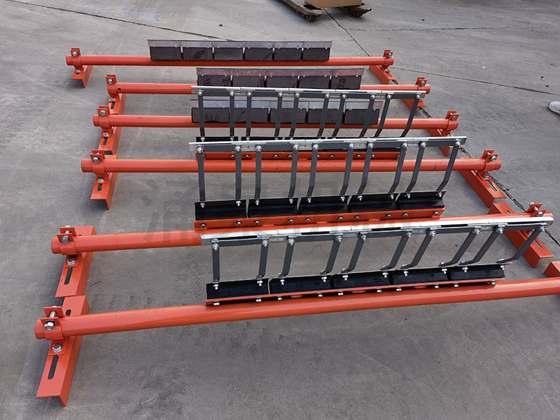 因此,為保證帶式輸送機正常運轉(zhuǎn),必須將輸送帶上的附著物清掃干凈。如果清掃裝置良好,對托輥、輸送帶等的壽命都可以延長。由此可見,清掃器在帶式輸送機上有著不可忽視的作用。